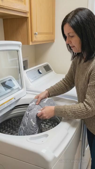 Il suffit de le mettre en machine sur un cycle classique avec la feuille de lessive TapisPuppy™.