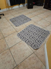 Lot de deux tapis 90x80 pour chien, ils doivent permettre d'absorber quand il y a un petit oubli... Pour mon labrador adulte de 40kg, un tapis c'est un peu petit mais les deux l'un à coté de l'autre, ca passe...